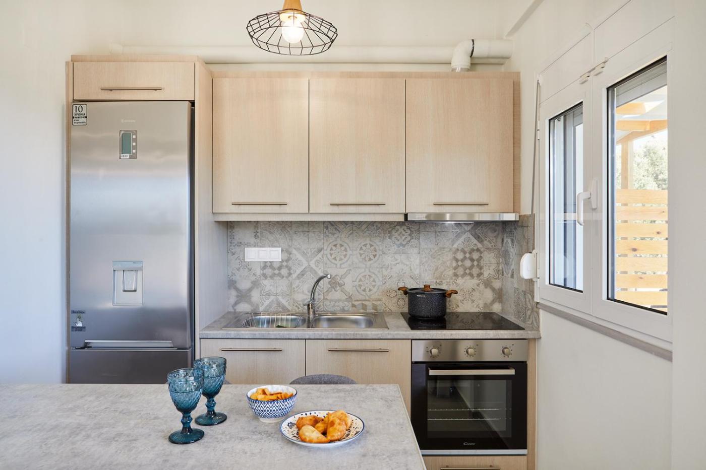The villa has 2 bedrooms, 1 bathroom, bed linen, towels, a flat-screen TV with streaming services, a dining area, a fully equipped kitchen, and a terrace with sea views. Vrachos Nature Lodges Thyme 1, Private pool is allergy-free and soundproof.