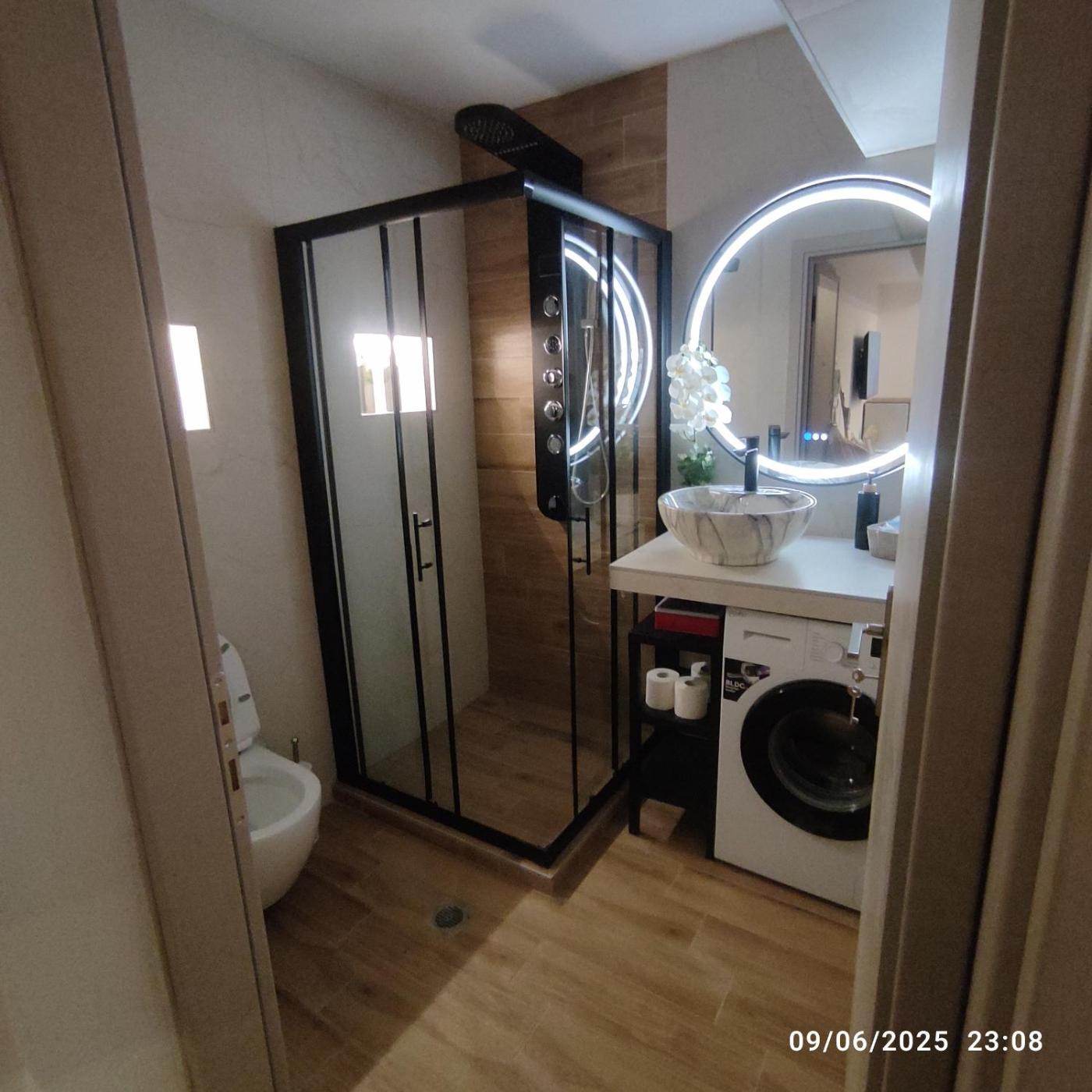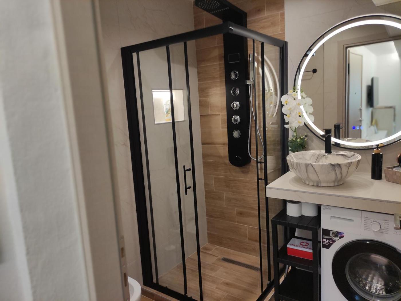 One-Bedroom Apartment. This apartment comprises 1 living room, 1 separate bedroom and 1 bathroom with a walk-in shower and free toiletries. In the fully equipped kitchen, guests will find a stovetop, a refrigerator, kitchenware and an oven. The air-conditioned apartment provides a flat-screen TV with streaming services, a washing machine, soundproof walls, a tea and coffee maker as well as city views. The unit offers 2 beds.