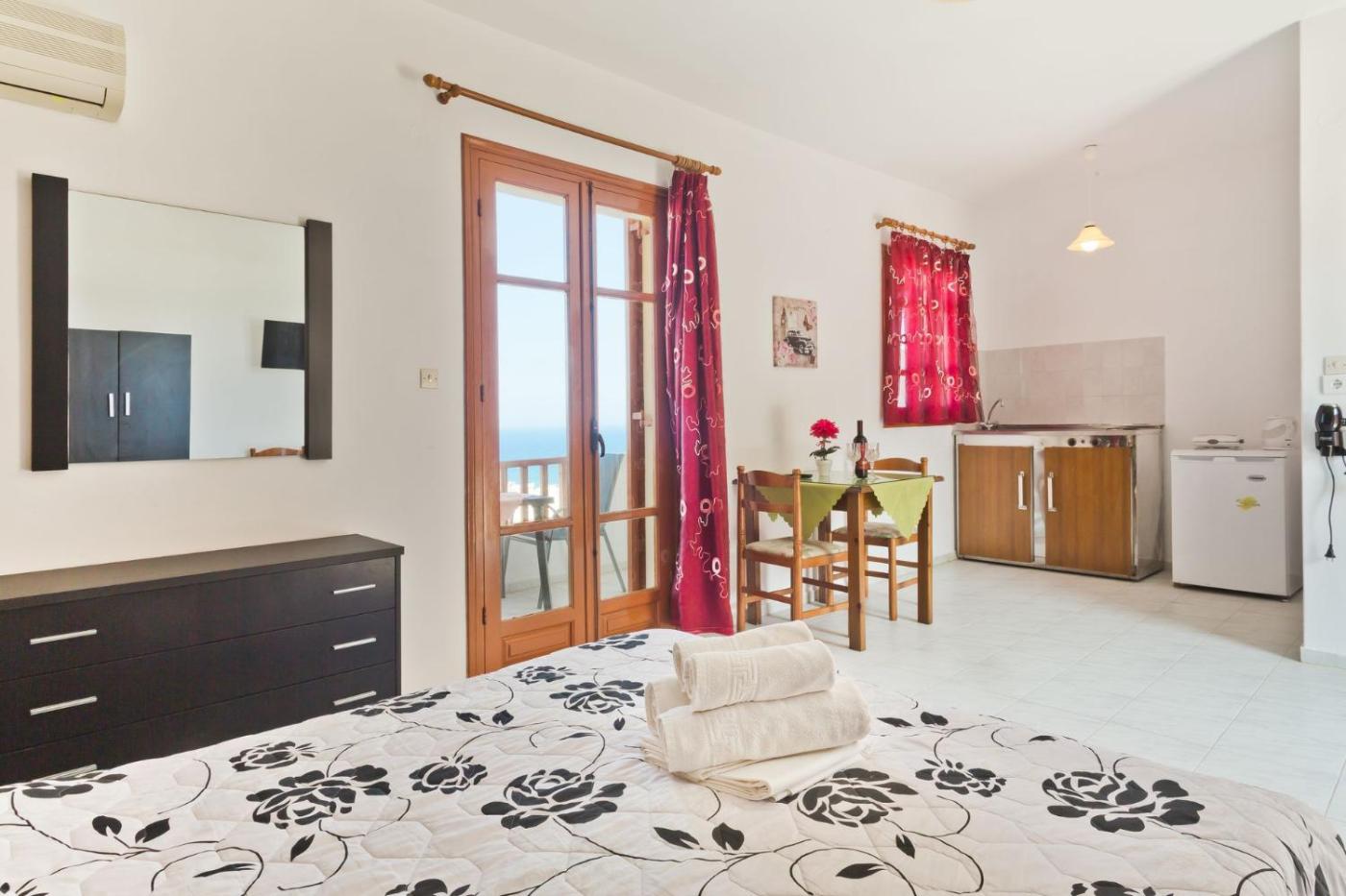 Studio. This studio comes with a well-equipped kitchenette and a large private balcony overlooking the village and the Aegean Sea. It also includes, free WiFi, a satellite TV, hairdryer and iron. Please note that double or twin bedding type, as well as upper-floor rooms, are subject to availability. Air conditioning is provided.