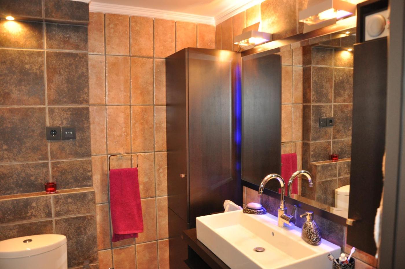 Villa with Shared Pool. Featuring an outdoor pool and a furnished sun terrace, this 300-m2 modernly decorated, split-level villa includes 4 separate bedrooms, a living and a dining area, two modern kitchens and 5 bathrooms. Facilities include a full range of house appliances, flat-screen TVs with satellite channels, games console, and free WiFi.