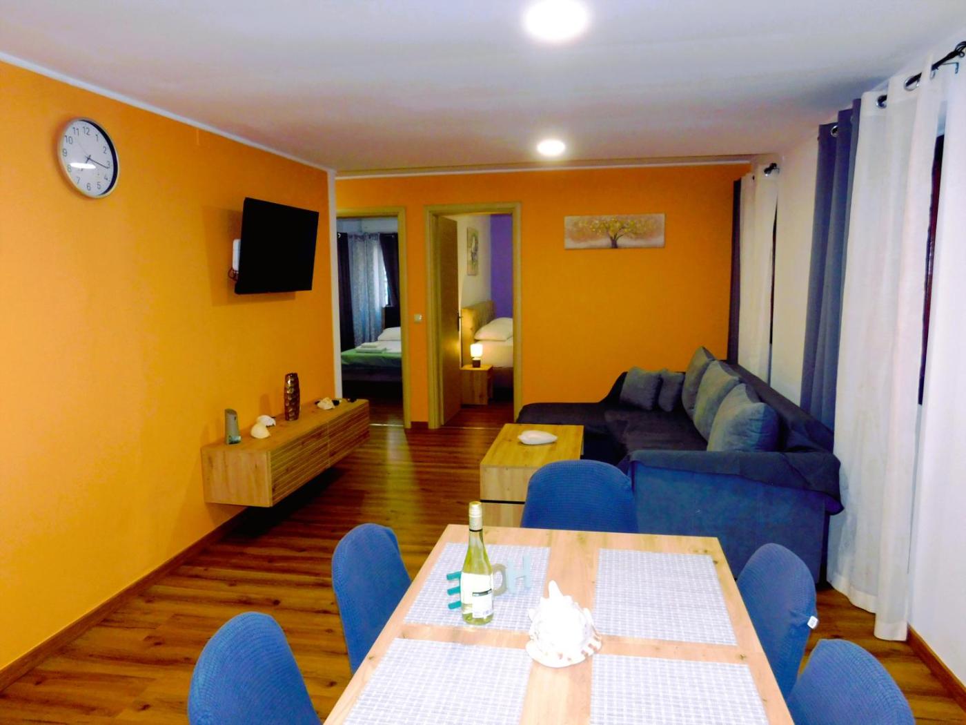 Two-Bedroom Apartment. This spacious apartment features 1 living room, 2 separate bedrooms and 1 bathroom with a walk-in shower and a hairdryer. The well-equipped kitchen features a stovetop, a refrigerator, an oven and a microwave. This apartment is air-conditioned and has a seating area with a flat-screen TV, a washing machine, soundproof walls, a tea and coffee maker, as well as a wardrobe. The unit has 3 beds.