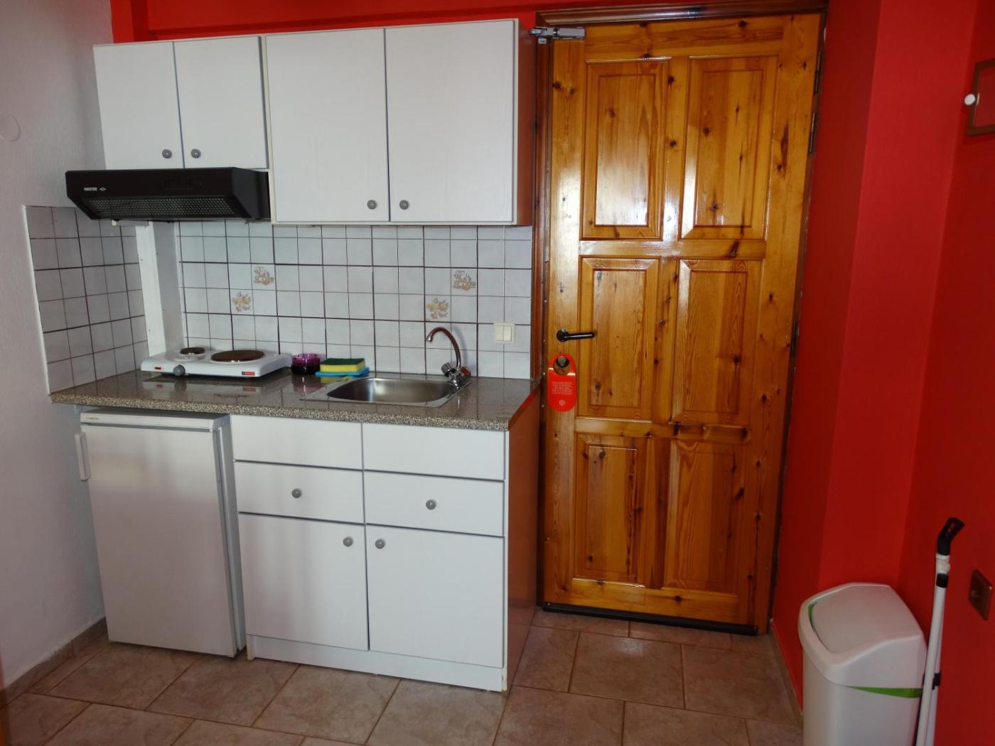 Studio. 20 metres from the beach this air-conditioned studio offers free Wi-Fi and balcony with side views of the Cretan Sea. A kitchenette with cooking facilities and fridge is included. Guests may choose between an extra large double or 2 twin beds. ;
