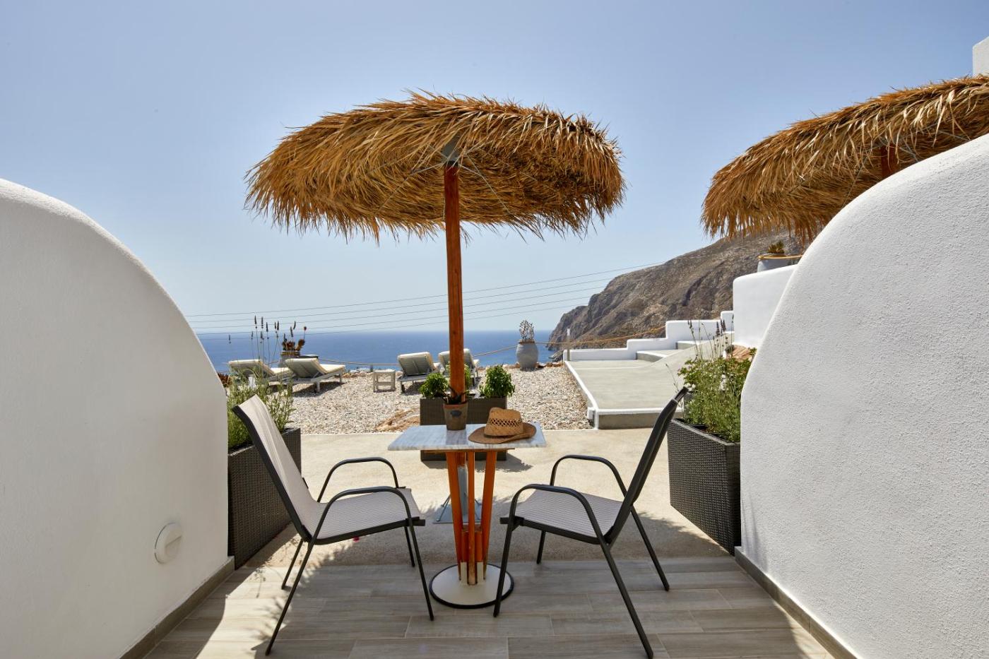 Offering panoramic views of the sea and nearby Fira, Acropole Sunrise Hotel is on a small hill a 15-minute walk from the pebbled beach of Kamari.rooms have balconies with sea, sunrise or sunset views.