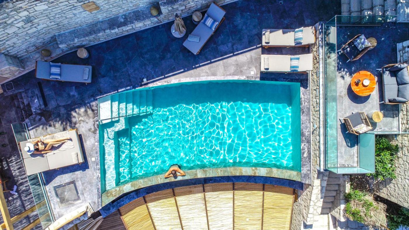 Junior Suite with Private Pool. Featuring a spa bath, this air-conditioned studio is fitted with stone details. Opening to a terrace, it offers a flat-screen, smart TV and a kitchen with electric oven and dining table. A washing machine and ironing facilities are included. Free Wi-Fi is provided. ;