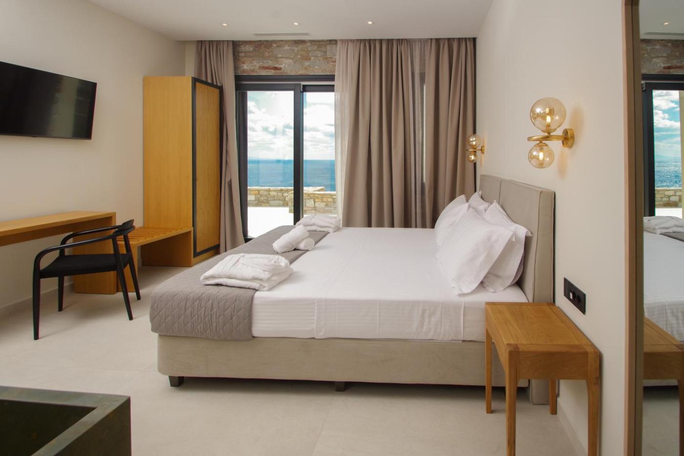 Boasting a patio with sea views, an infinity pool and a garden, Pnoe Villas Syros can be found in Megas Yialos-Nites, close to Achladi Beach and 10 km from Saint Nicholas Church. This beachfront property offers access to a balcony, free private parking and free WiFi. The accommodation features airport transfers, while a bicycle rental service is also available.
