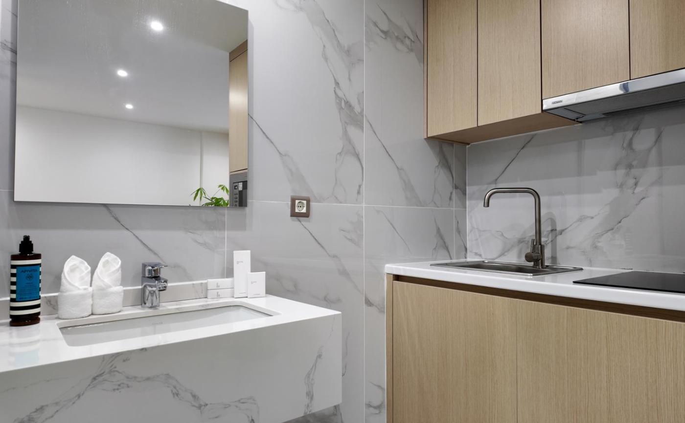 Superior Queen Room. The well-fitted kitchen features a refrigerator, kitchenware, a microwave and a tea and coffee maker. The spacious double room provides air conditioning, a minibar, a terrace with garden views as well as a private bathroom featuring a shower. The unit offers 1 bed. ;
