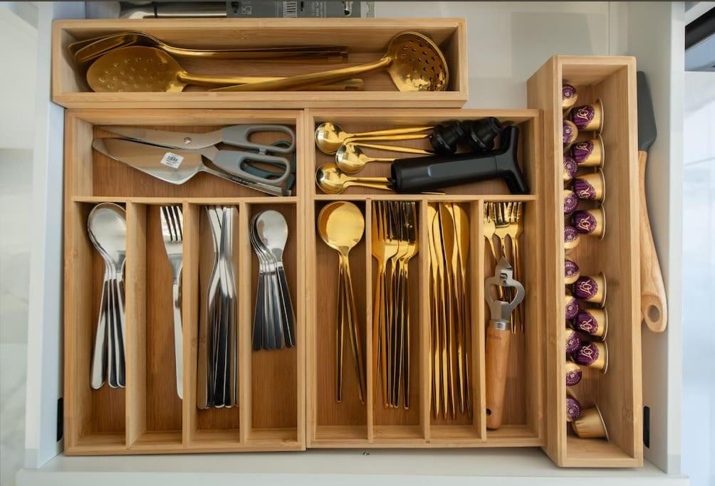 One-Bedroom Apartment. This air-conditioned apartment comprises 1 living room, 1 separate bedroom and 2 bathrooms with a shower. The well-equipped kitchen has a stovetop, a refrigerator, a dishwasher and kitchenware. This apartment features a washing machine, a tea and coffee maker, flat-screen TV with streaming services, as well as winechampagne for guests. The unit offers 2 beds.