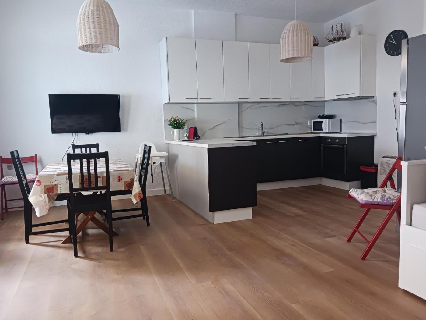 Two-Bedroom Apartment. This spacious apartment comes with 1 living room, 2 separate bedrooms and 1 bathroom with a shower and a hairdryer. The fully equipped kitchen features a stovetop, a refrigerator and kitchenware. This apartment is air-conditioned and has a seating area with a flat-screen TV, a washing machine, a coffee machine, a dining area, as well as a wardrobe. The unit has 4 beds.