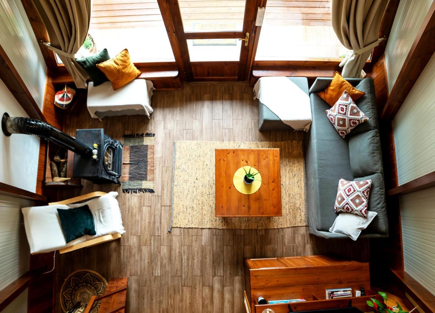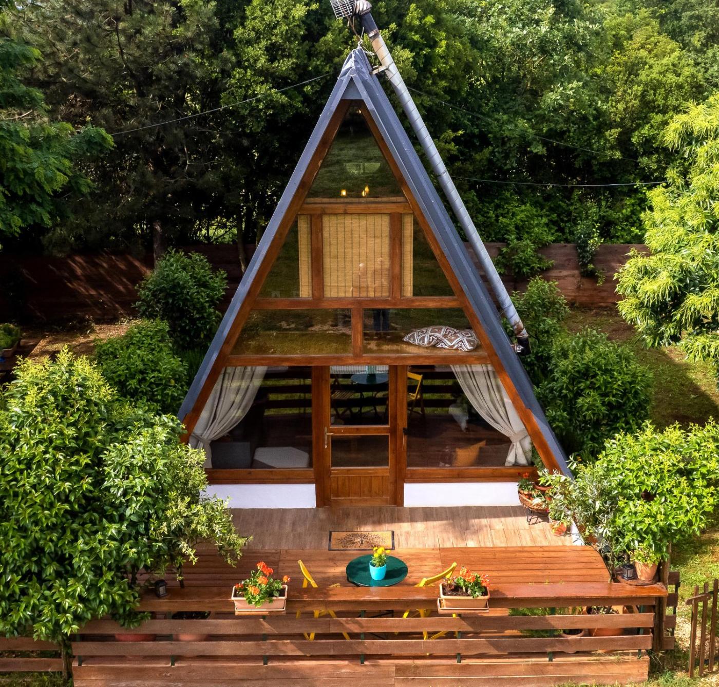 One-Bedroom Chalet. This chalet offers a fireplace. Boasting a private entrance, this air-conditioned chalet includes 1 living room, 1 separate bedroom and 1 bathroom with a shower and a hairdryer. Guests will find a stovetop, a refrigerator, kitchenware and an oven in the kitchen. The chalet also features a barbecue. The unit has a tea and coffee maker, garden views, a terrace and winechampagne is offered for guests. The unit has 3 beds.